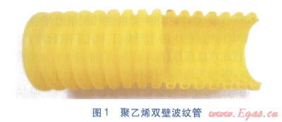 波紋管管材為中密度聚乙烯(MDPE)材料,一般適宜應(yīng)用在低壓管道。有別于普通聚乙烯管,聚乙烯雙壁波紋管見圖1。波紋管采用較薄的雙壁設(shè)計,外壁呈波浪狀,能維持管道形狀,防止穿越彎頭時管道折疊;內(nèi)壁較平滑,使燃氣流動時摩擦造成的壓力損失降至最低。波紋管有相當(dāng)高的柔韌性,大大加強插管時穿過彎頭的能力,最多可穿過2390°彎頭,每次插管操作可更換1015m長的鍍鋅鋼管。使用波紋管修復(fù)取代傳統(tǒng)開挖修復(fù),能減少地面開挖及對庭院環(huán)境的破壞,還可降低修復(fù)成本,加快修復(fù)進度。