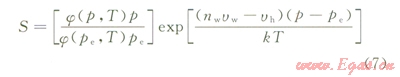 式中J為水合物的成核速率,l/(m3·s);k0、n鉀為常數(shù);S為過飽和比率。