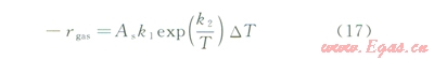 式中k1為速率常數(shù),kg/(m2·s·K);k2為溫度參數(shù),K;rgas為氣體消耗量,kg/s。