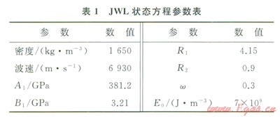 式中p為壓力;V為相對(duì)體積;E0為初始比內(nèi)能,A1B1、R1、R2、w為材料常數(shù)。