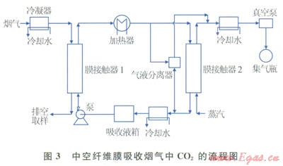 1)煙氣來源方面。目前膜吸收CO2的試驗研究主要采用模擬氣體為主,僅少量學(xué)者用實際煙氣進(jìn)行研究。但是在電廠運行過程中尾部煙氣可能存在諸如CH4、SO2、H2S等雜質(zhì)氣體以及吲體粉塵顆粒,對試驗結(jié)果造成負(fù)面影響,所以需要考慮干擾因素的影響,更為符合電廠煙氣的實際狀況。