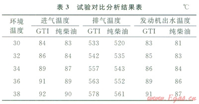 適用性試驗結(jié)論為:環(huán)境溫度較高時,發(fā)動機的排氣溫度和出水溫度均比純柴油的高,且出水溫度接近或超過報警值90℃;使用GTI的濟柴機組完全滿足正常鉆進、提空游車、啟動鉆井泵、起下鉆等工況,司鉆操作方法與純柴油相同;GTI保護比較完善,在參數(shù)超過報警值時,會自動切換成純柴油模式。