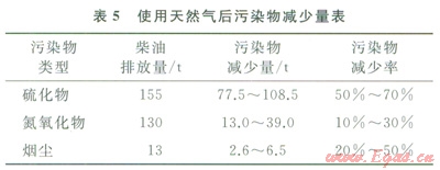 2)環(huán)境保護。使用天然氣后能夠有效降低大氣污染物的排放量。根據(jù)當前已經(jīng)使用的天然氣數(shù)量,減排情況如表5所示。