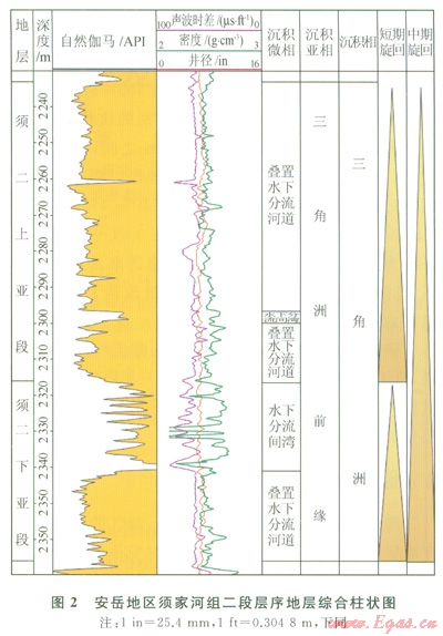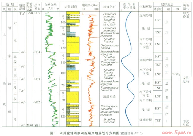 四川盆地川中地區(qū)須家河組劃分為4個三級層序,每個層序可進一步識別出低位、水進和高位3個體系域,其中低位體系域以三角洲相為主,水進和高位體系域則以湖泊相為主,該區(qū)須二段總體上位于低位體系域[4](圖1)。
