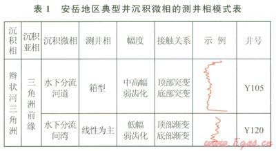 本次研究采用6級劃分方案(巨旋回、超長期旋回、長期旋回、中期旋回、短期旋回、超短期旋回),筆者以Yl05井為例,將須二段劃分為一個中期旋回,即一個上升半旋回,代表基準面上升,可容納空間增加,對應三角洲前緣亞相。該區(qū)典型井沉積微相的測井相模式如表1所示。這一時期總體上為一個水域變寬、沉積物粒度逐漸變細的時期,層序疊加樣式為退積式;在其內部進而劃分出兩個短期旋回,分別對應須二下亞段和須二上亞段,其中須二上亞段GR曲線呈箱狀(2233~2316m),說明有大套砂體疊置,層序疊加樣式為加積式到退積式,識別為可容納空間增加的上升半旋回(圖2)。