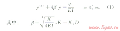 式中1為管道截面慣性矩,K0為地基系數(shù),D為管道外徑,E為鋼材的彈性模量。可推導(dǎo)出: