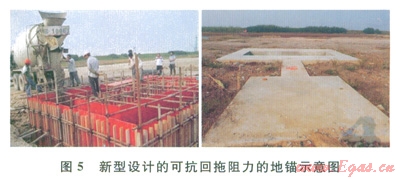 1)設計特殊地錨。通過計算回拖阻力,設計了專門針對大噸位回拖阻力的地錨(圖5),以抵抗大的回拖阻力。