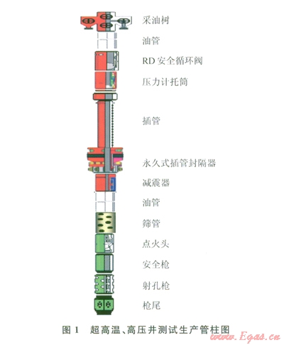 導(dǎo)向引鞋+射孔槍+點火頭+篩管+永久式插管封隔器+壓力計托筒+RD安全循環(huán)閥+油管+采油樹(圖1)。