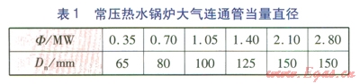 鍋爐房設(shè)計(jì)時(shí),可根據(jù)表1核對(duì)鍋爐上的大氣連通管的直徑是否合適。