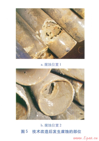 按單純改善換熱管材質(zhì)考慮,當(dāng)換熱管采用20號(hào)鋼時(shí),一組管箱(整體焊接的固定管箱式結(jié)構(gòu))的制造安裝費(fèi)用為2.85×104元。當(dāng)換熱管采用ND鋼時(shí),一組管箱(整體焊接的固定管箱式結(jié)構(gòu))的制造安裝費(fèi)用為6.96×104元。后者的制造安裝費(fèi)用為前者的2.44倍,但使用壽命并未明顯延長(zhǎng),最長(zhǎng)為5~10個(gè)月。