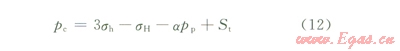 將式(2)帶入式(11)可得井壁產生拉伸破壞時的破裂壓力為:
