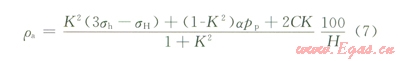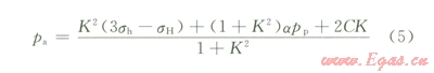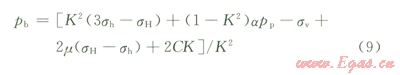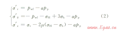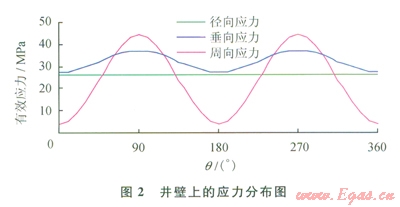 式中sr、sq、sz,分別為井壁徑向、周向、垂向的有效應力;pwf井內液柱壓力;pp為地層壓力;m為巖石泊松比;m為井周角(井壁上某點的失徑與最大水平地應力方位的夾角) sHsh分別為最大、最小水平地應力。