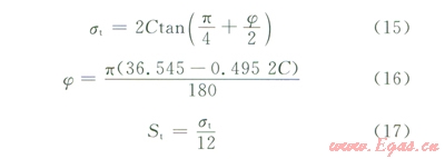 地層強度參數(shù)中對井壁穩(wěn)定性產生直接影響的是黏聚力和內摩擦角,筆者認為,黏聚力和內摩擦角是巖石相互關聯(lián)的兩個強度參數(shù),地層強度的改變會導致二者同時發(fā)生變化,不應將二者的影響單獨分析,而應直接以單軸強度作為變化量進行研究。假設地層強度參數(shù)服從關系式(15)[23],且黏聚力和內摩擦角滿足經驗關系式(16)[24],則可用地層單軸抗壓強度同時表征黏聚力和內摩擦角的變化。分析時還應當考慮地層強度變化對拉伸強度的影響,地層抗拉強度(St)與單軸抗壓強度(st)的關系由三維Griffith準則[23]給出,滿足式(17)。