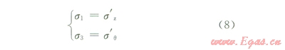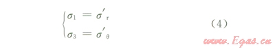 當徑向應力為最大主應力、周向應力為最小主應力時,井壁上的應力狀態(tài)為: