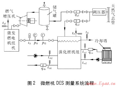 國內(nèi)目前建設(shè)的微燃機(jī)分布式能源系統(tǒng)(Distributed Energy System,簡稱DES)示范工程一般均采用傳統(tǒng)的顯示儀表進(jìn)行數(shù)據(jù)讀取,傳統(tǒng)顯示儀表功能單一,在進(jìn)行運(yùn)行參數(shù)采集時(shí)需多人相互協(xié)作完成,效率低且無法確保測(cè)量數(shù)據(jù)的實(shí)時(shí)性與準(zhǔn)確性,大量數(shù)據(jù)分析與處理工作只能在采集結(jié)束后進(jìn)行。通過構(gòu)建可實(shí)現(xiàn)微燃機(jī)DES運(yùn)行參數(shù)自動(dòng)采集和記錄的計(jì)算機(jī)輔助測(cè)試(Computer Aided Tesring,簡稱CAT)系統(tǒng),可快速完成大容量、多類型的數(shù)據(jù)采集、顯示和記錄,并進(jìn)行分析與處理,以便動(dòng)態(tài)掌握微燃機(jī)DES的工作進(jìn)程并進(jìn)行實(shí)時(shí)監(jiān)控。本文結(jié)合某微燃機(jī)DES工程,對(duì)微燃機(jī)DES的運(yùn)行參數(shù)及動(dòng)態(tài)性能指標(biāo)的測(cè)量進(jìn)行研究。