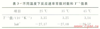 根據(jù)擴(kuò)散控制界面模型擬合得出的不同溫度條件下(25℃、35℃、45℃)反應(yīng)速率常數(shù),見表3。