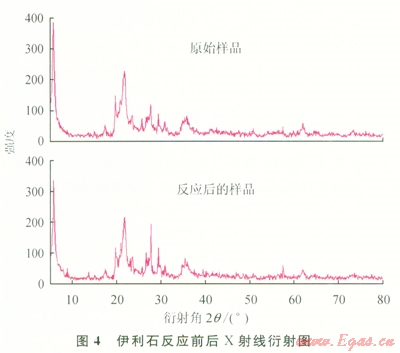 用X射線衍射儀對(duì)與pH值為4.3碳酸溶液反應(yīng)前后的伊利石礦物進(jìn)行測(cè)試,測(cè)試結(jié)果見圖4。