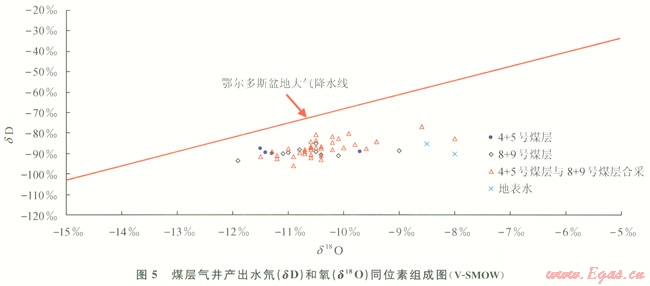 2.3 煤層氣井產(chǎn)出水氘(dDH2O)和氧(d18OH2O)同位素組成特征