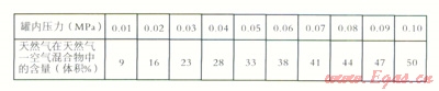 10000m3球罐增壓時,罐內(nèi)壓力與濃度表: