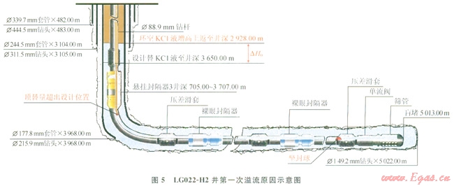 3)用KC1液替水平段鉆井液過程中,發(fā)生溢流時若坐封球已投入,管柱無有效循環(huán)通道,無法實(shí)施壓井。如:LG022-H2井只能在環(huán)空泄壓情況下繼續(xù)送球入座待坐封丟手后再進(jìn)行處理。