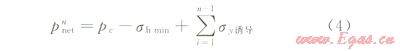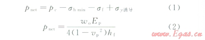 pnet為裂縫內(nèi)凈壓力,MPa;pc為裂縫內(nèi)壓力,MPa;shmin為最小水平主壓力,MPa;sf為巖石抗張強度,MPa;sy誘導(dǎo)為人工裂縫引起的誘導(dǎo)應(yīng)力,MPa;wo為裂縫縫寬;Ep為油層的楊氏模量,MPa;up為儲層的泊松比;hf為裂縫高度,m;p2net為第2條裂縫內(nèi)凈壓力,MPa;s1y誘導(dǎo)為第1條裂縫引起的誘導(dǎo)應(yīng)力,MPa;pnnet為第n條裂縫內(nèi)凈壓力,MPa;i為變量;C為裂縫半縫高度,m;x為縫長方向距離,m;y為縫寬方向距離,m;如q、q1和q2為負(fù),則用q+180°、q1+180°和q2+180°代替。