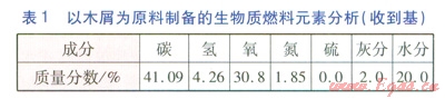 以木屑為原料制備的生物質(zhì)燃料元素分析(收到基)見表l。生物質(zhì)燃料的低位發(fā)熱量為14.46MJkg
