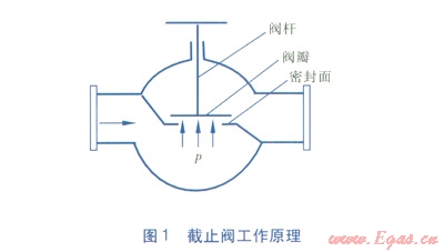 供熱管道上常用的大口徑閥門有金屬硬密封蝶閥、閘閥、截止閥,通常DN 200mm及以下口徑的閥門宜采用截止閥,DN 250600mm口徑宜采用閘閥,DN 700mm及以上口徑宜采用多層金屬硬密封蝶閥。對于0.6MPa以下的供熱管道,截止閥的口徑可用到DN 400mm。這是由于對于同等口徑的閥門,截止閥的密封面積最大,密封面積越大,閥門就越耐用,因此盡可能采用截止閥。但截止閥的缺點是作用在閥瓣上的壓力p所產(chǎn)生的力直接作用在閥桿的軸向上(見圖l),閥門的口徑越大,作用在閥桿軸向上的推力越大,因此,截止閥的口徑不宜過大。市場上也沒有很大口徑的截止閥。