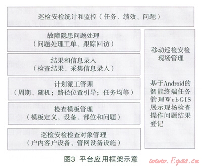 2012年12月到2013年3月,集團完成了平臺的整體規(guī)劃,在完成軟件設(shè)計代碼的同時,完成安檢巡檢的業(yè)務(wù)流程梳理規(guī)范,建立戶內(nèi)外設(shè)備的數(shù)據(jù)規(guī)范和收集整理;同期完成無線網(wǎng)絡(luò)搭建和終端設(shè)備的比選試用。