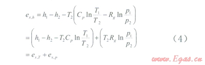 (4)式可以看出,穩(wěn)流物質(zhì)的用可分解為兩部分,即在某一壓力下系統(tǒng)與環(huán)境之間因熱不平衡而具有的溫度用ex,T和在環(huán)境溫度時(shí)系統(tǒng)與環(huán)境之間因力不平衡而具有的壓力用ex,T。分析表明天然氣在高中壓降壓過(guò)程中可回收的最大壓力用為