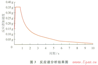 由于強(qiáng)地面運(yùn)動產(chǎn)生的影響范圍較大,需重點研究管道在動態(tài)載荷作用下的應(yīng)力及位移分布情況。動態(tài)地震分析通常分為2種方法:時程分析法與頻譜分析法。由于管道屬于線彈性系統(tǒng),具有固有頻率,而地震管道的應(yīng)力分析只需得出整個動態(tài)過程中的最大位移與應(yīng)力,故選用頻譜分析法較為合適。頻譜分析法精度較時程分析法略低,但計算較為簡便[13]。