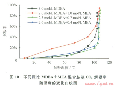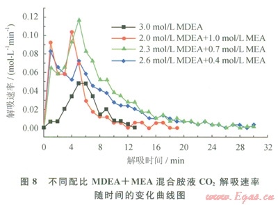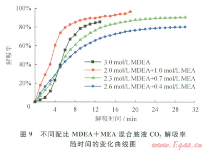 32 不同配比MDEA+MEA混合胺液對CO2的解吸性能