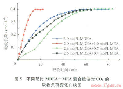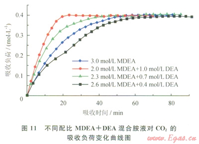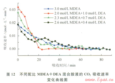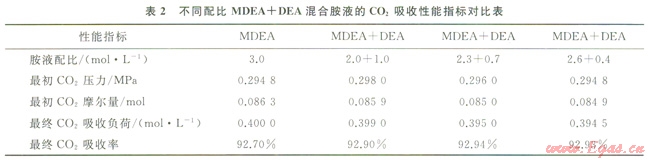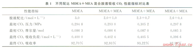 31 不同配比MDEA+MEA混合胺液對CO2的吸收性能