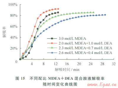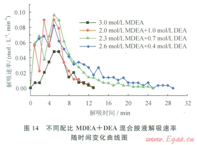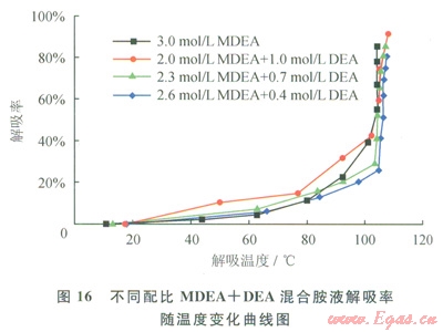 34 不同配比MDEA+DEA混合胺液對CO2的解吸性能