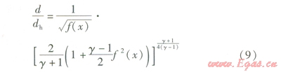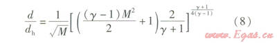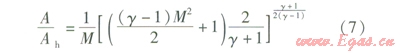 設(shè)喉口截面的面積為Ah,則M=1時(shí),A=Ah,即: