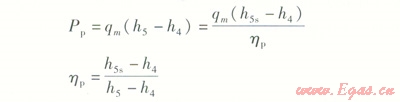 工質在透平內等熵膨脹做功的功率Pt的計算式為: