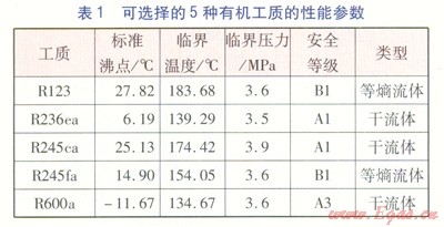 采用有機朗肯循環(huán)回收燃氣機熱泵余熱用于發(fā)電,是一種有效利用余熱的途徑。有機工質R245fa適用于燃氣內燃機余熱溫度水平,且對環(huán)境友好。