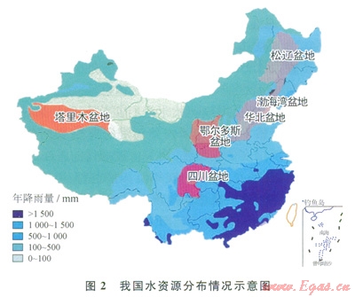 此外,在我國頁巖氣富集的山區(qū),地表條件較差,水資源匱乏,大規(guī)模水力壓裂造成的環(huán)境污染和資源浪費等問題也不容忽視,以美國2011年頁巖氣開發(fā)數(shù)據為例,根據美國能源部統(tǒng)計,每一口頁巖氣鉆井平均用水量高達1.5×104m3[7]。預計全年頁巖氣水平井鉆井數(shù)為8000口,則一年的用水量至少為l.2×l08m3。我國是一個干旱缺水嚴重的國家,人均年可利用淡水資源量儀為900m3,不到美國的l5,并且分布極其不均,統(tǒng)計到20世紀末,全國600多座城市中,已有400多個城市存在供水不足問題,其中比較嚴重的缺水城市達ll0個,全國城市缺水總量為60×l08m3。如圖2所示,我國頁巖氣田的分布與缺水地區(qū)的分布重合較多。在水量相對充裕的長江流域,只在四川[8]和江漢盆地發(fā)現(xiàn)了頁巖氣,而在西北、華北地區(qū)[9],頁巖氣儲量豐富,水資源卻相當緊張[10]。與此同時,35%的壓裂液將返排至地表,若處理不當將給環(huán)境帶來巨大的污染,同時也增加了開發(fā)成本[11]。因此,我國頁巖氣資源的高效可持續(xù)開發(fā),不能單純借鑒北美大規(guī)模水力壓裂的生產模式,需要大力發(fā)展高效環(huán)保、低水量消耗的壓裂液體系以及配套的壓裂設備和技術方法。