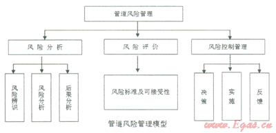 油氣管道風(fēng)險(xiǎn)管理技術(shù)的核心是管道風(fēng)險(xiǎn)評(píng)價(jià)技術(shù),該技術(shù)的研究經(jīng)歷了定性、半定量到定量分析三個(gè)階段,方法種類(lèi)很多,適合于不同情況的需求。這里采用定性和半定量結(jié)合的辦法進(jìn)行管道風(fēng)險(xiǎn)評(píng)價(jià)。風(fēng)險(xiǎn)管理的主要環(huán)節(jié)如下圖。
