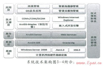 技術支撐層包括COM+/COM/DCOM,Windows Internet Explorer,ArcGIS-Maplex,嵌入式開發(fā)引擎等。