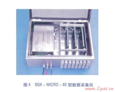 BGK-ICR0-40型數(shù)據(jù)采集儀見圖4,主要技術(shù)指標(biāo)見表lBGK-MICR0-40型數(shù)據(jù)采集儀主要功能為:遠程控制和數(shù)據(jù)采集功能?,F(xiàn)場操作功能:預(yù)留有與便攜式計算機的接口,可實現(xiàn)現(xiàn)場標(biāo)定、調(diào)試以及數(shù)據(jù)采集等功能。實時時鐘管理:為定時測量、自動儲存等功能提供時間基準(zhǔn)。斷電保護:所有參數(shù)和監(jiān)測數(shù)據(jù)儲存在專用非易失性儲存器中,可確保斷電后參數(shù)和數(shù)據(jù)的安全??估讚簦涸陔娫聪到y(tǒng)、通信線路接口、模擬輸入引線等處設(shè)置了有效的抗雷擊電路。抗電磁干擾:模塊采用金屬盒封裝,在電路設(shè)計上對通信接口采用光電隔離技術(shù),具備很強的抗電磁干擾能力。智能化測量功能:可根據(jù)要求實現(xiàn)定點測量、定時測量、即時測量等多種測量方式。多種供電方式:可實現(xiàn)電池及220V交流電源供電,內(nèi)置可充電免維護電池,保證在外部供電中斷情況下繼續(xù)正常運行168h以上。