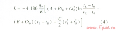 將式(3)等號(hào)左側(cè)在管長0~L范圍進(jìn)行積分運(yùn)算,等號(hào)右側(cè)在溶液溫度tR~tL范圍進(jìn)行積分運(yùn)算,可得到: