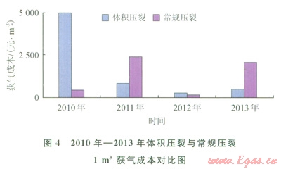 4.1 體積壓裂與常規(guī)壓裂每立方米獲氣成本評價