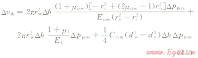 AB、C位移分量,并考慮到孔隙壓力下降,并令rrw,可得固井第二界面處井壁巖石徑向位移變化:
