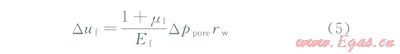式中Duf為固井第二界面處井壁巖石位移變化,m;Ef為地層巖石的彈性模量,Pa;mf為地層巖石的泊松比。