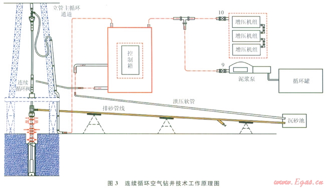 井底沉砂過多可導(dǎo)致提前結(jié)束空氣鉆井,而采用連續(xù)循環(huán)鉆井技術(shù)可避免沉砂卡鉆,滿足空氣鉆井安全作業(yè)需求,延長空氣鉆井進(jìn)尺。