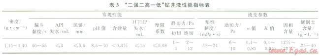 該轉(zhuǎn)換用鉆井液體系的組成為:特殊前置液,配方:油基潤濕反轉(zhuǎn)劑+柴油+氧化瀝青粉,利用油基潤濕反轉(zhuǎn)劑特性,改變巖石表面性質(zhì),變親水表面為憎水表面,阻止水分進(jìn)入地層,防止井壁坍塌。②特殊堵漏漿,通過鉆井液中加入適量無滲透、聚合醇、陽離子乳化瀝青等處理劑來實(shí)現(xiàn)鉆井液的防漏作用。③含油聚磺一KCl鉆井液,具有二強(qiáng)二高一低特征。舉砂液,建立井筒循環(huán)之后清潔井眼所用,通過高密度、高黏度的特點(diǎn)充分?jǐn)y帶井筒巖屑。形成了一套適合塔里木山前礫石層地質(zhì)特征的鉆井液轉(zhuǎn)換工藝技術(shù)(4),保障安全實(shí)施。