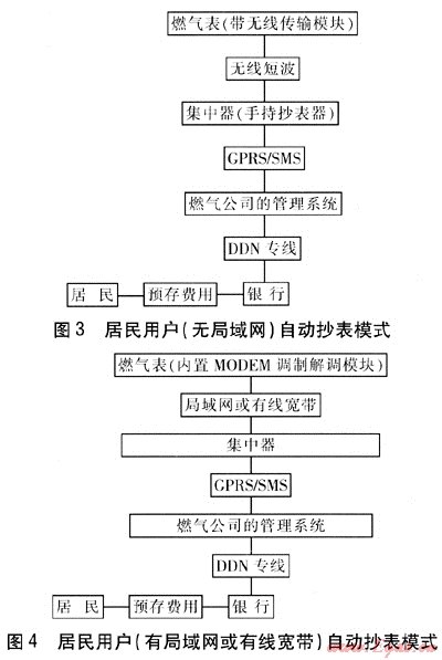 由購買氣量改為預(yù)存費(fèi)用,預(yù)存費(fèi)用的數(shù)值保存在燃?xì)夤镜臄?shù)據(jù)管理中心,以便根據(jù)燃?xì)鈨r(jià)格實(shí)時(shí)調(diào)整,避免燃?xì)鈨r(jià)格上漲前用戶囤氣給燃?xì)夤編頁p失。此方式綜合了國外的先進(jìn)技術(shù)和我國的國情,將成為我國城鎮(zhèn)燃?xì)饩用裼脩簟⑸虡I(yè)用戶今后計(jì)量收費(fèi)的發(fā)展趨勢。對于其他不適合預(yù)付費(fèi)方式的城鎮(zhèn)燃?xì)庥脩簦窈蟀l(fā)展的趨勢是自動(dòng)抄表。