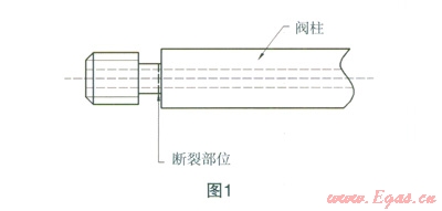 公司技術(shù)部門、施工管理部門會同施工方、設(shè)備廠家一起對調(diào)壓器進行了拆解,經(jīng)過對兩臺調(diào)壓器進行拆解,發(fā)現(xiàn)均為調(diào)壓器的閥桿斷裂,閥桿斷裂部位均在閥桿端部連接閥瓣的槽口處(見圖1)。