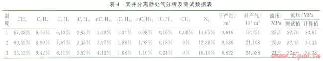 2)井筒壓力測試時氣分析數(shù)據(jù)。該數(shù)據(jù)取樣點一般為井口或分離器內(nèi)氣態(tài)氣,基本不含重組分或重組分極少,不能代表該井實際流體組成。