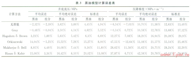 2 井筒壓降預(yù)測統(tǒng)計分析